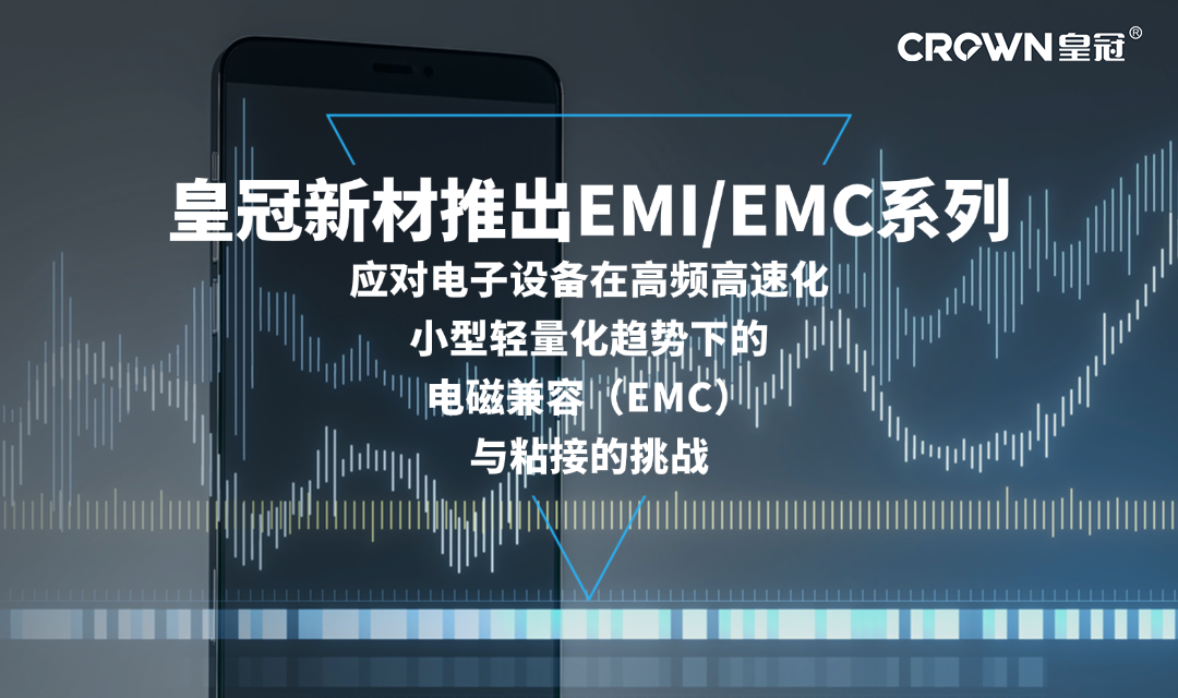 为了系统的应对电子设备在高频高速化、小型轻量化趋势下的电磁兼容(EMC)与粘接的挑战,皇冠新材推出EM产品系列,产品包含导电胶带和吸波材料。