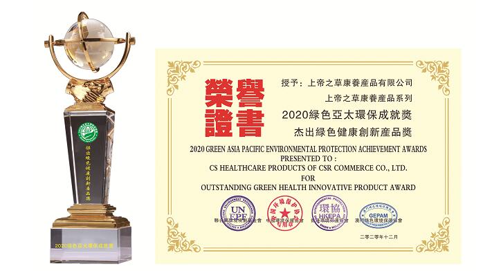 上帝之草康养产品系列喜获“2020绿色亚太环保成就奖”