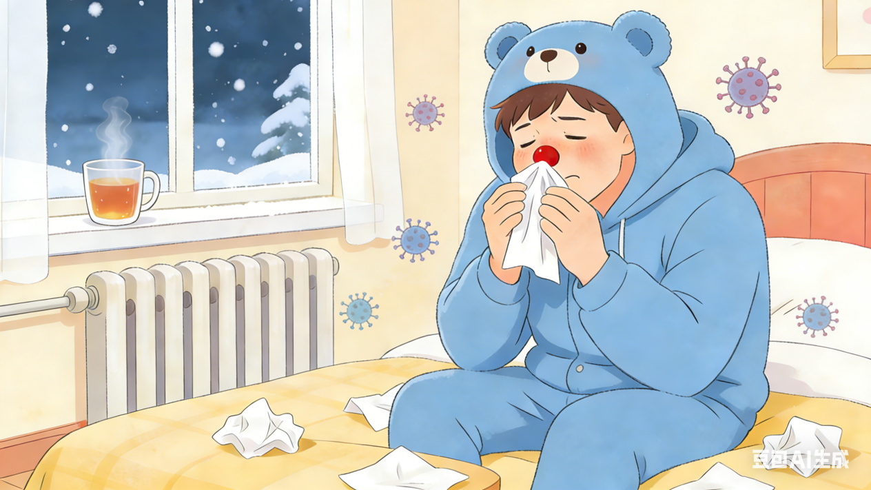 其实,寒冷并不是感冒的直接原因,感冒流感的元凶多是由病毒引起。这些病毒通过飞沫传播或接触传播进入人体呼吸道,最终引发感染。大家之所以会觉得是被“冻”感冒了,原因在于气温的急剧变化会让人体的“第一道防线”——呼吸道黏膜变得更加敏感,使其防御功能下降,“战斗力”减弱,给了流感病毒、呼吸道合胞病毒、鼻病毒等病原体可乘之机。再加上冬季室内外温差大,大多紧闭门窗,导致空气不流通,病毒在密闭环境中更容易传播。