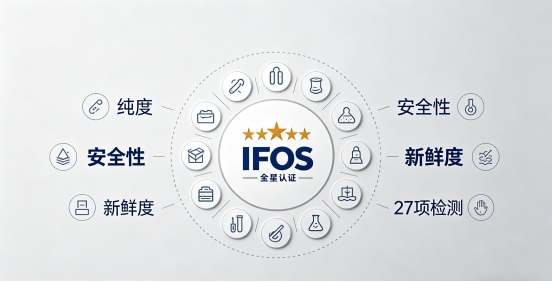 专业细节解释:IFOS认证覆盖纯度(Omega-3实际含量是否符合标示)、安全性(重金属如汞、铅、砷、镉,二噁英、多氯联苯等污染物是否低于极值)、新鲜度(过氧化值、茴香胺值等氧化指标)共27-32项严苛检测[reference:6][reference:7]。选购时应核查认证编号,确保认证仍在有效期内。