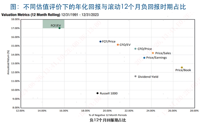 注:源自Pacer官网报告《Free Cash Flow Yield & Margin:Proven Measurements of Value and Growth》,基于罗素1000指数前100家公司计算,在每个估值指标中不含金融行业,其中FCF为公司经营活动产生的现金流减去资本支出,企业价值EV为公司调整后市值以消除资本机构偏差。