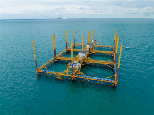 图:国内首个自主升降海洋牧场平台“湛农1号”