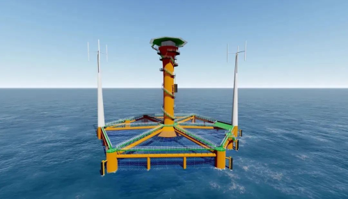 图:全球首例全潜悬浮定深高抗台养殖平台“海塔一号”