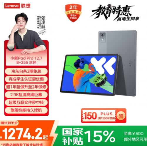 购买平板不妨考虑联想小新PadPro12.7 2025款。其搭载12.7英寸屏幕,支持144Hz电竞刷新率,配置JBL四扬声器,带来沉浸式视听体验,还联手主流视频平台,适配更高规格影视作品;硬件级低蓝光设计配合环境光自适应调节,更护眼。内置10200mAh大容量电池,支持45W超级闪充,续航无忧。联想小新PadPro12.7 2025款 8GB+256GB京东原价1499元,深圳消费者享国补立减15%。到手价1274.15元,可享3期免息。