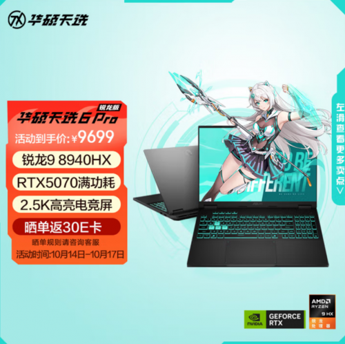 游戏爱好者可以考虑华硕天选6 Pro 锐龙版 16英寸游戏本。其轻约2.25kg,薄至1.79cm,出门携带也轻松。搭载AMD 锐龙9 8940HX移动处理器和RTX 5070,性能优异,配合冰川散热,打游戏无压力。采用16英寸IPS广视角屏幕,支持2560×1600分辨率、G-SYNC,获得清晰、流畅游戏画面。华硕天选6 Pro 锐龙版 16英寸游戏本(锐龙9 8940HX 16G 1T RTX5070 2.5K 日蚀灰)到手价9699元。