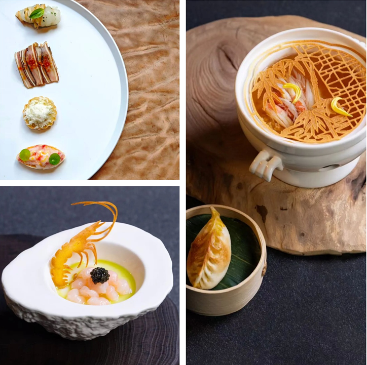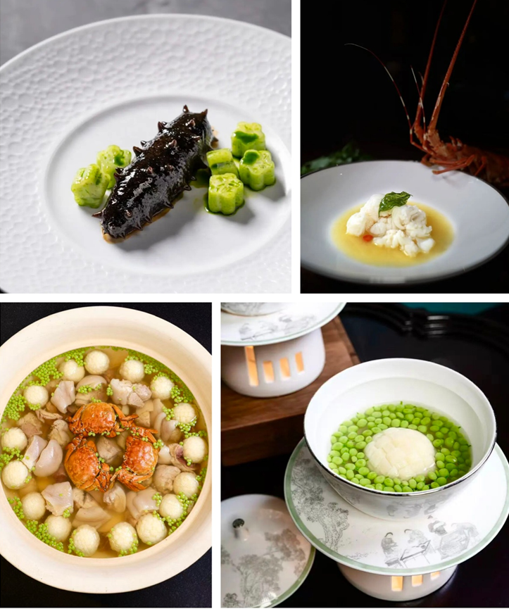 当晚的焦点,莫过于六位来自北京、杭州、潮汕及无锡的顶级星厨。他们首次携手,化身“风味调音师”,联袂奏响了一场餐饮界的“十二手联弹”。从清新灵动的江南冷韵四味,到复刻太湖本真的三白狮子头醉腌鲜;从细腻华美的乳酪蛋白虾仁配鱼子酱,到堪称行业典范的董氏葱烧海参;从霸气炽烈的金不换汆澳洲龙虾,到礼赞秋日丰盈的醋椒蟹肉羹配生煎蟹黄秋叶包……每一道菜肴,都是一首对地方特色进行创造性演绎的城市诗篇。