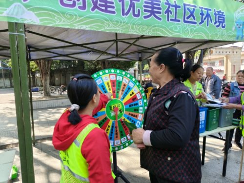 为了让分类知识更加入脑入心,活动特别设置了趣味盎然的互动体验环节。在“四色垃圾分类卡片模拟投放”区域,不同颜色的小卡片代表着各类常见生活垃圾,居民们需要将它们精准地投放到对应的迷你版“蓝、绿、红、灰”四色垃圾桶中。无论是活泼的小朋友,还是银发长者,都积极参与挑战,在动手实践中巩固了所学知识。一位带着孙子的阿姨在成功完成投放后高兴地表示:“这样边玩边学,记得特别牢,回家就知道该怎么分了!”旁边的“垃圾分类转盘游戏”更是将现场气氛推向了高潮。大转盘上写满了各种垃圾名称,参与者转动指针,需要快速回答指针所指物品属于哪类垃圾。转盘每一次转动都伴随着阵阵欢呼和善意的提醒,答错者在工作人员的纠正下也加深了印象。欢声笑语中,垃圾分类的绿色理念如同秋日暖阳,悄然洒进每位参与者的心田。