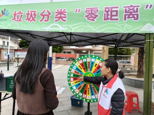 为了巩固所学知识,让分类理念真正入脑入心,活动特别设置了趣味互动环节。在“模拟投放”互动游戏区,村民们现学现用,将代表不同垃圾的卡片准确投放到对应的“迷你垃圾桶”中,在实践中加深了记忆。而“分类转盘”有奖问答环节更是将现场气氛推向高潮,转盘指针转动间,一道道垃圾分类问题被提出,村民们争相回答,在欢声笑语中掌握了知识,也收获了小小的礼品。