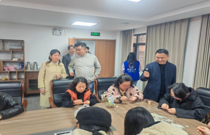 调研组一行实地察看东湖区“就业之家”整体运营情况,先后走访综合服务大厅、圆桌培训室、一号微车间、招聘大厅、二号微车间、“微创业孵化”中心工作室、直播间等功能区域,全方位了解平台建设、服务模式、就业带动等工作成效。现场,圆桌培训室内正在开展“五瓣花”手工活专项培训。调研中,调研组重点聚焦东湖区“就业之家”微招聘、微培训、微车间的三微特色工作,详细询问各微车间的手工活品类、灵活就业组织培育,以及微招聘开展形式、微培训课程设置等情况,对东湖区“就业之家”以三微特色为抓手,整合多元服务载体、拓宽群众就业增收渠道的创新做法给予高度肯定。